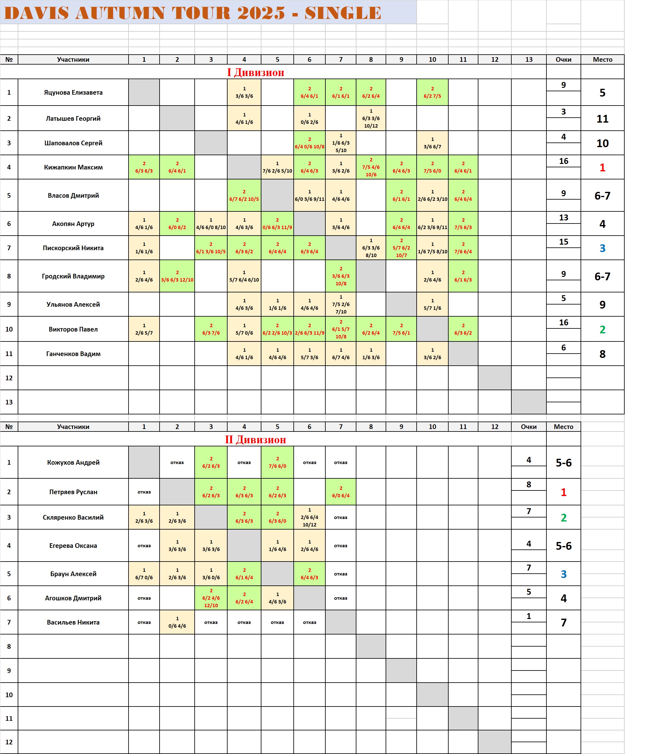 C 8 сентября 2025 по 30 ноября 2025 года проходит DAVIS AUTUMN TOUR 2025 в одиночном разряде , список участников и положение ниже.*