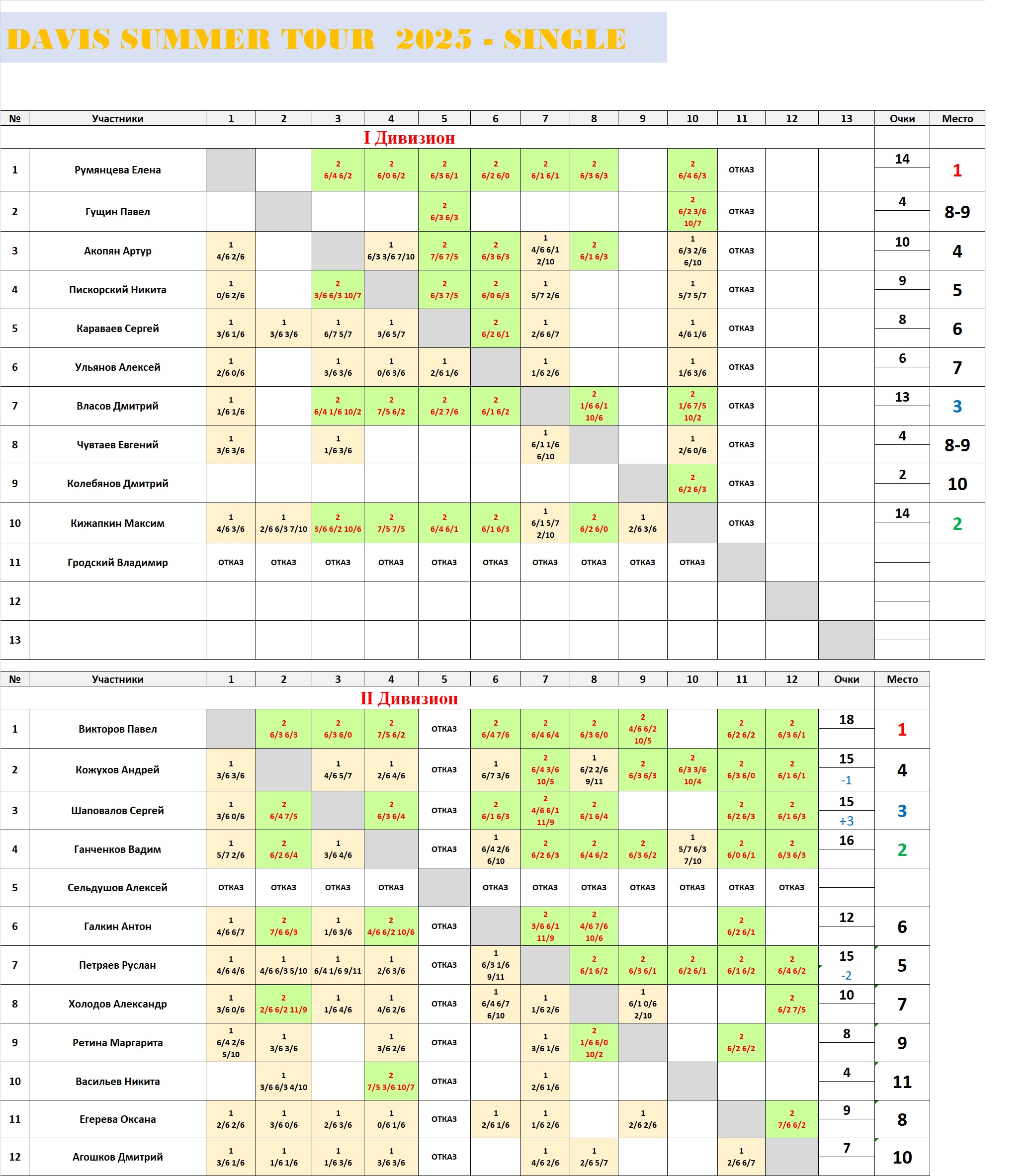 C 5 июня 2025 по 31 августа 2025 года проходит DAVIS SUMMER TOUR 2025 в одиночном разряде , список участников и положение ниже.*