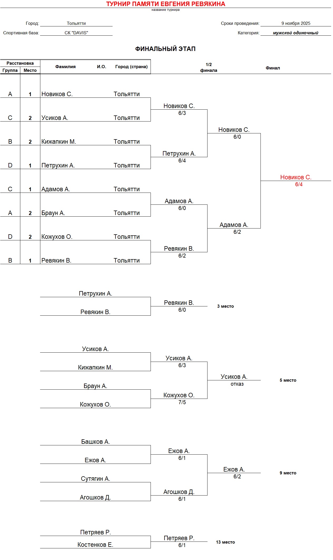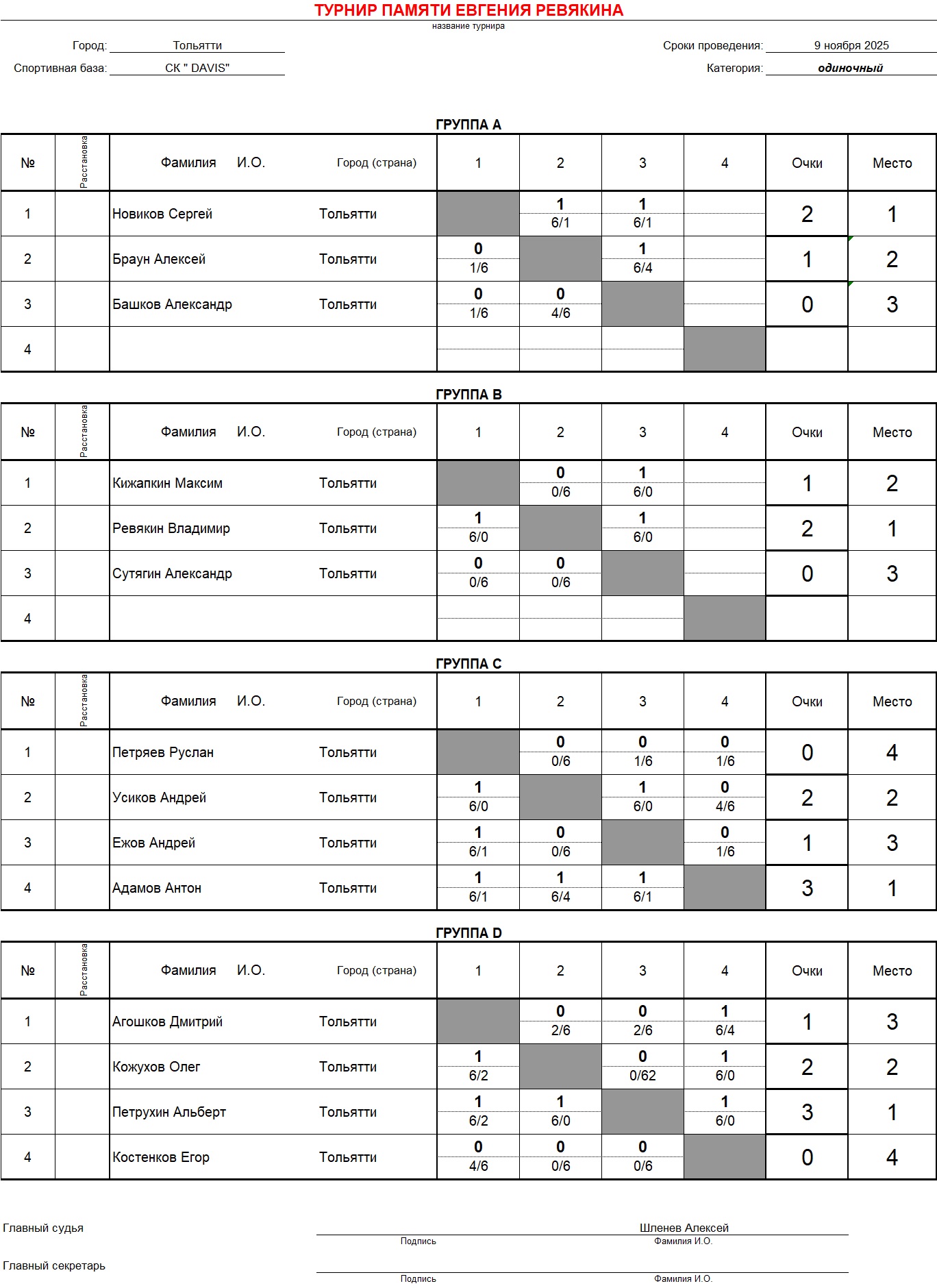 Турнир памяти Евгения Ревякина 9 ноября 2025 г.