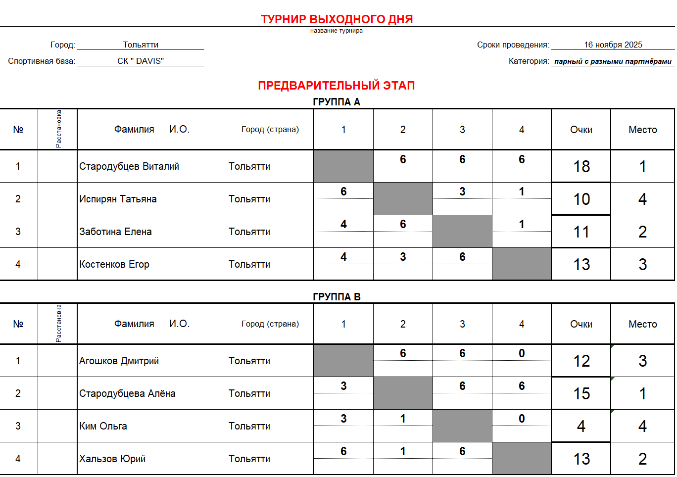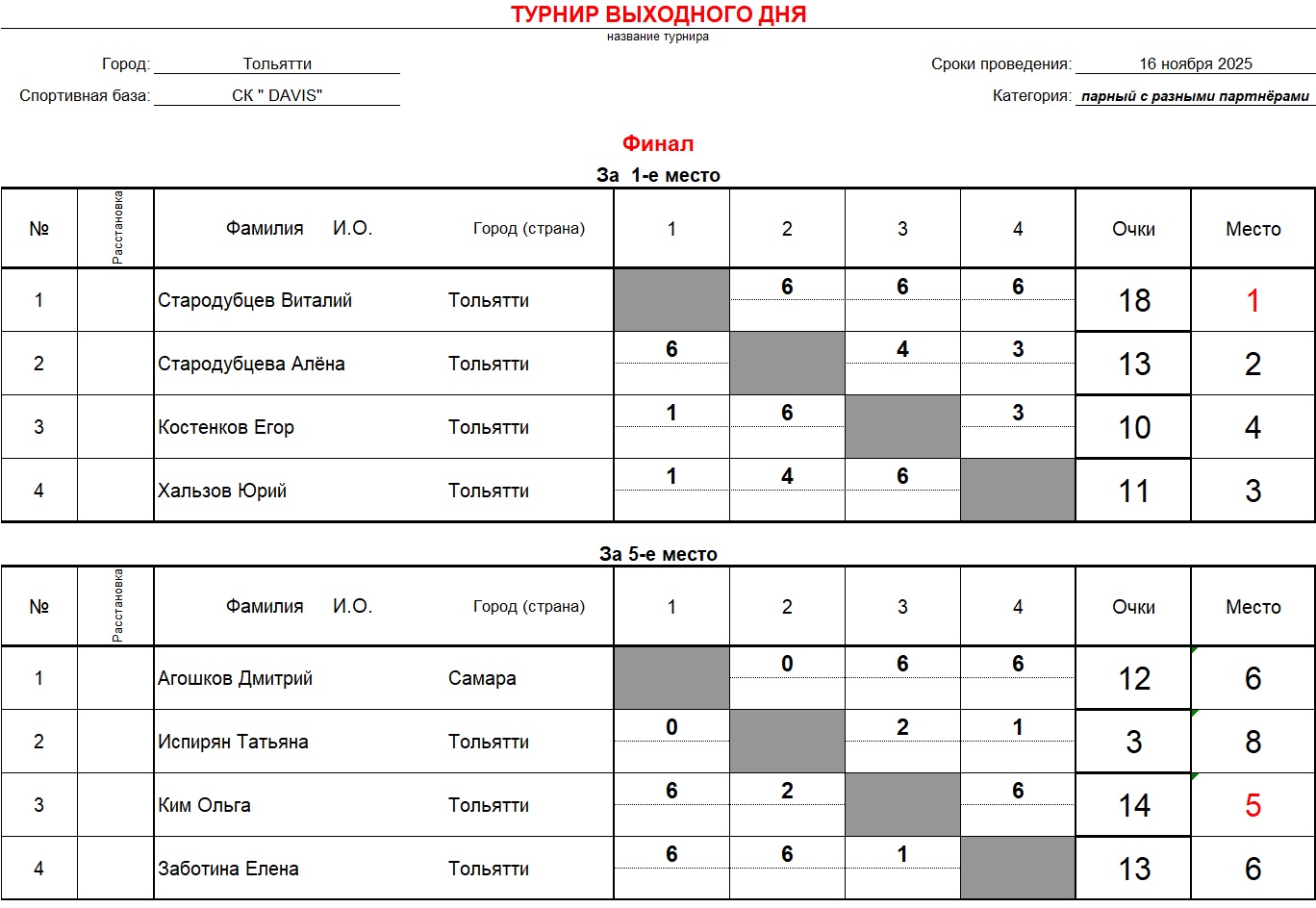 Турнир выходного дня по теннису