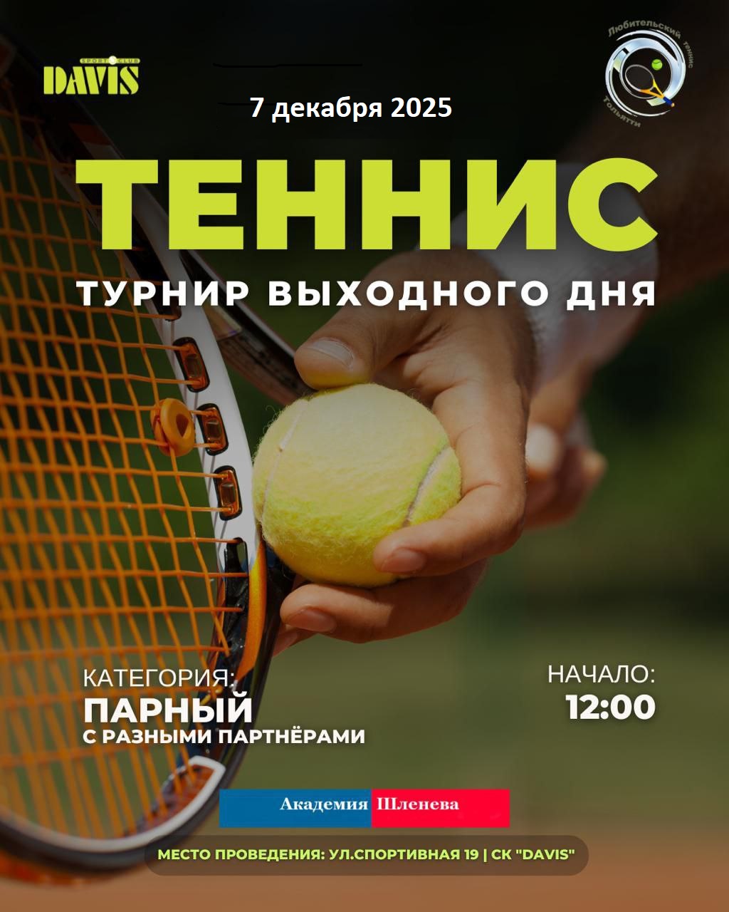 турнир состоится 7 декабря (воскресенье) с 12-00
