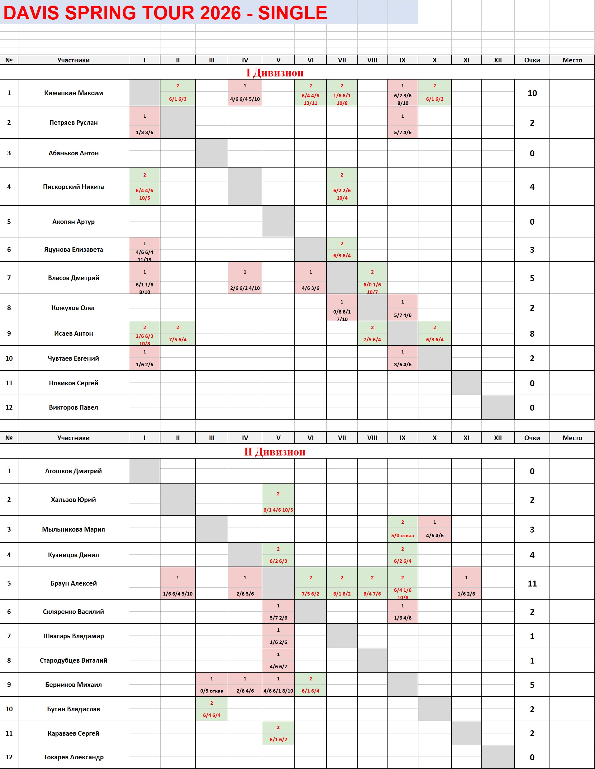 C 3 марта 2026 по 31 мая 2026 года проходит DAVIS SPRING TOUR 2026 в одиночном разряде , список участников и положение ниже.*