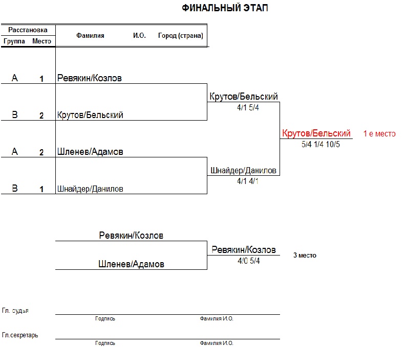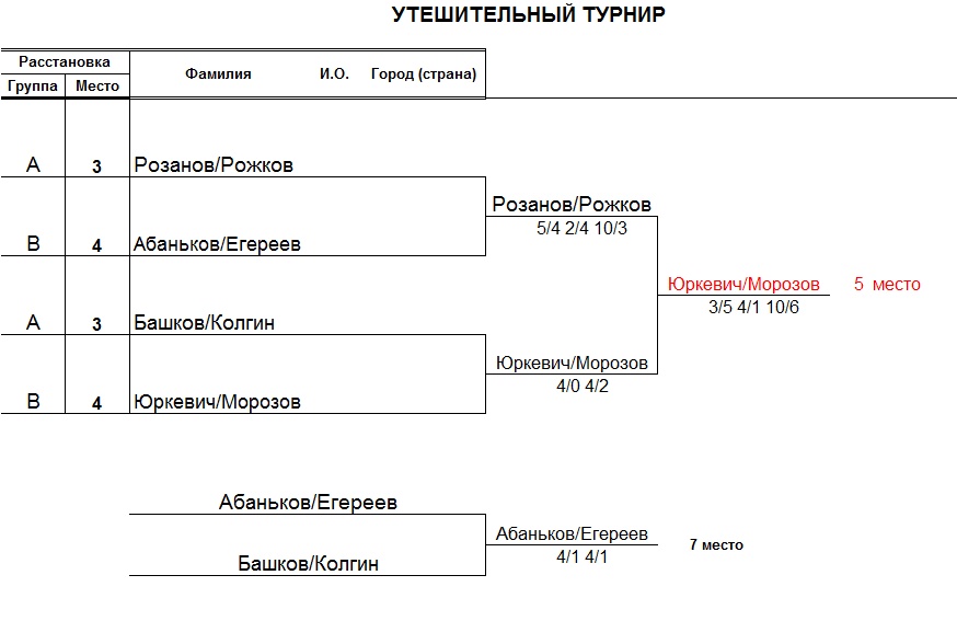 | 5 | Абаньков А./Егерев А. | Тольятти | 0 |
